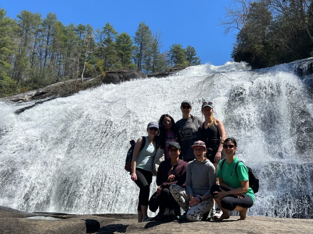8. Our group waterfall hike and eating lunch in nature